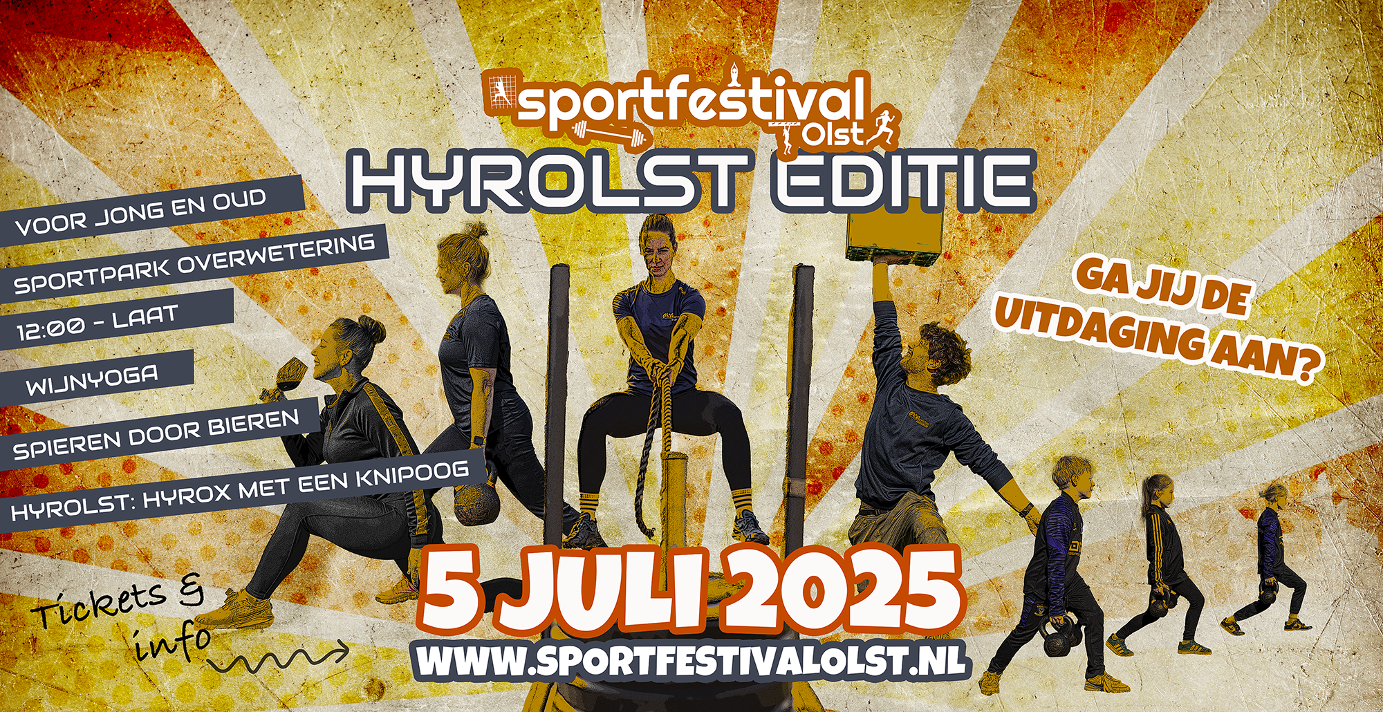 Op 5 juli 2025 wordt Sportfestival Olst weer georganiseerd. Een gezellig en sportief festival waar je samen je team, vrienden, sportmaatjes een toffe sportieve uitdaging aan kan gaan in een festival sfeer. Natuurlijk kan je daarna ook nog heerlijk genieten van een sportieve bier of wijnproeverij met Spieren door Bieren of de WijnYoga.
